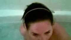 Essa morena aguarda ansiosamente um bom pau e uma mãe gostosa enquanto está na banheira. É uma delícia ver uma mulher chupando assim.