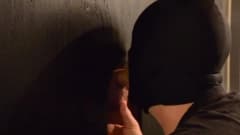 Vamos ver esse homem mascarado, chupando um pau que sai do buraco na parede nessa cena quente de sexo oral entre desconhecidos.