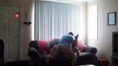 Neste vídeo, vemos um cara transando com sua namorada no sofá até que ele esteja pronto para gozar e ele ama o jeito que ela fode