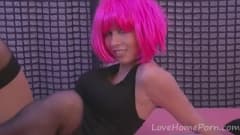 Essa garota de cabelo cor-de-rosa é muito safada e quer nos mostrar suas tetas nessa cena em que a veremos se tocando gostoso.