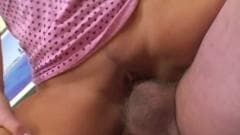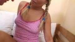Esta jovem loira gosta de foder um pênis velho e lamber as bolas velhas deste cara que a fode completamente no sofá.
