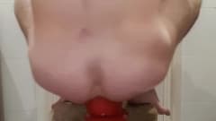 Este gay adora se masturbar enfiando um vibrador no rabo, mas hoje ele terá um brinquedo sexual muito grande em que ele vai se sentar para penetrar-se