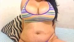 Esta morena Latina tem um par de seios perfeitos, grandes e redondos, que ela exibe na frente da câmera enquanto acaricia para provocá-los.