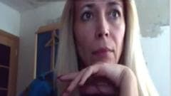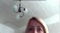 A loira que vemos neste vídeo começa a tirar as roupas na webcam durante um bate-papo por vídeo. Vai excitar você ver seu corpo