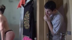 Esse jovem prevertido espia a amiga da sua mãe trocando de roupa mas não resiste a querer transar com a gostosa.