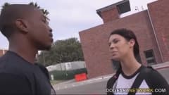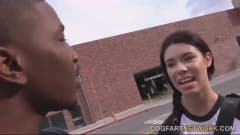Uma jovem vagabunda muito gostosa será apanhada pelo pai chupando um grande pau de um negro. Ele fica chateado mas manda o casal foder enquanto se masturba