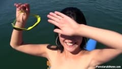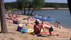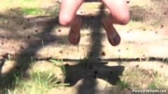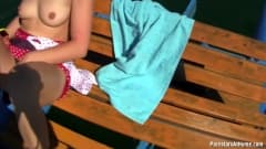 Essa linda morena está brincando com ela mesma num parque. Ainda bem que um cara a acompanha porque ela está realmente excitada.